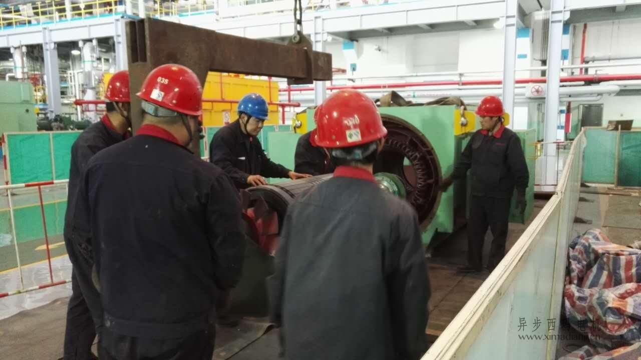 西安電機(jī)維修廠快訊:2018.6.28日應(yīng)西安灞橋熱電有限公司要求,我公司派遣維修技術(shù)人員對22號C給水泵電機(jī)YKOS2700-2 2700KW 6KV電機(jī),進(jìn)行現(xiàn)場拆機(jī),經(jīng)故障診斷為定子燒包,應(yīng)客戶要求結(jié)合施工情況對定子返廠大修。