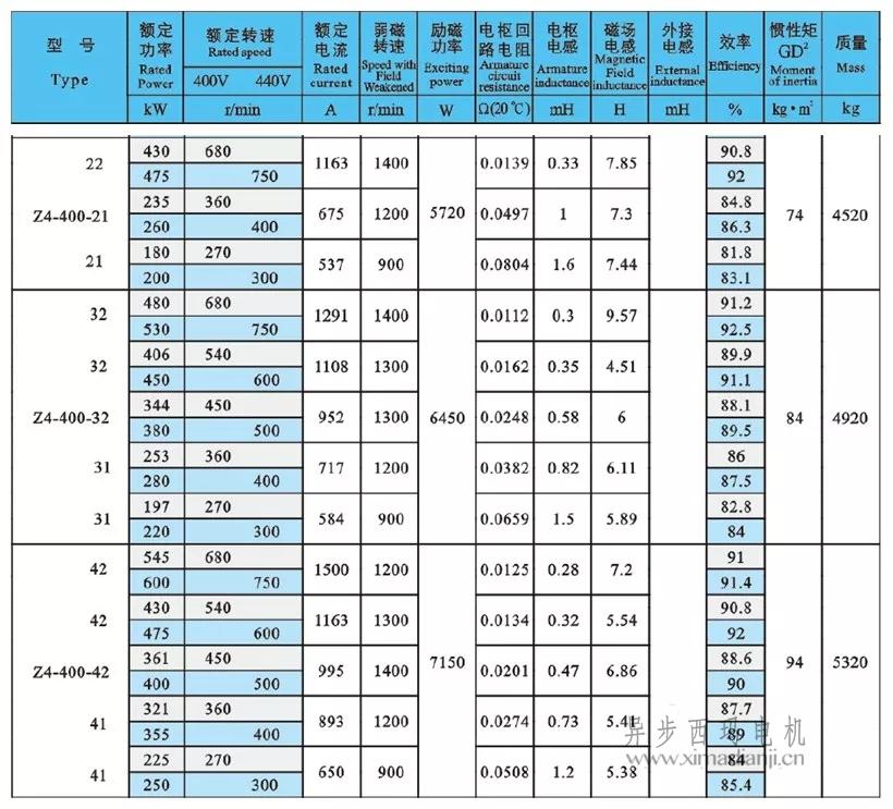 Z4-400-22 475KW直流電動機440V 750轉(zhuǎn)技術(shù)參數(shù)及安裝尺寸