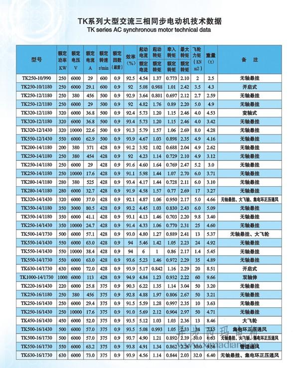 1.本系列電動機包括TK系列有刷同步電動機和TAW系列增安無刷勵磁同步電動機。